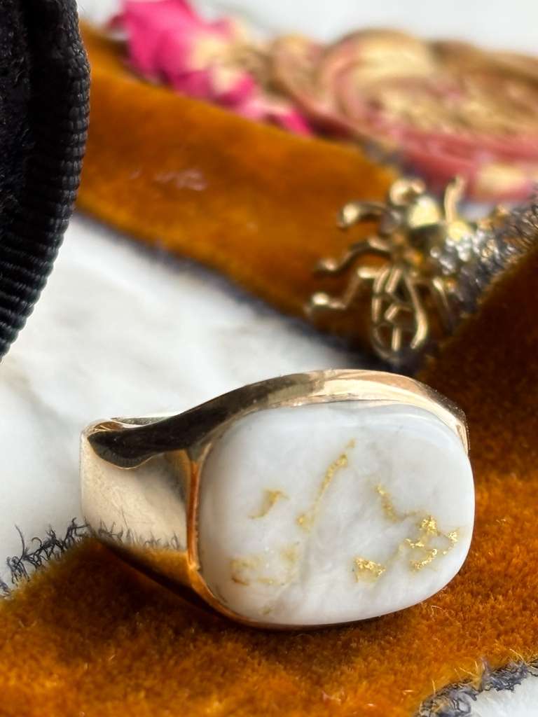 14k Vintage Gold Bearing Quartz Signet Ring