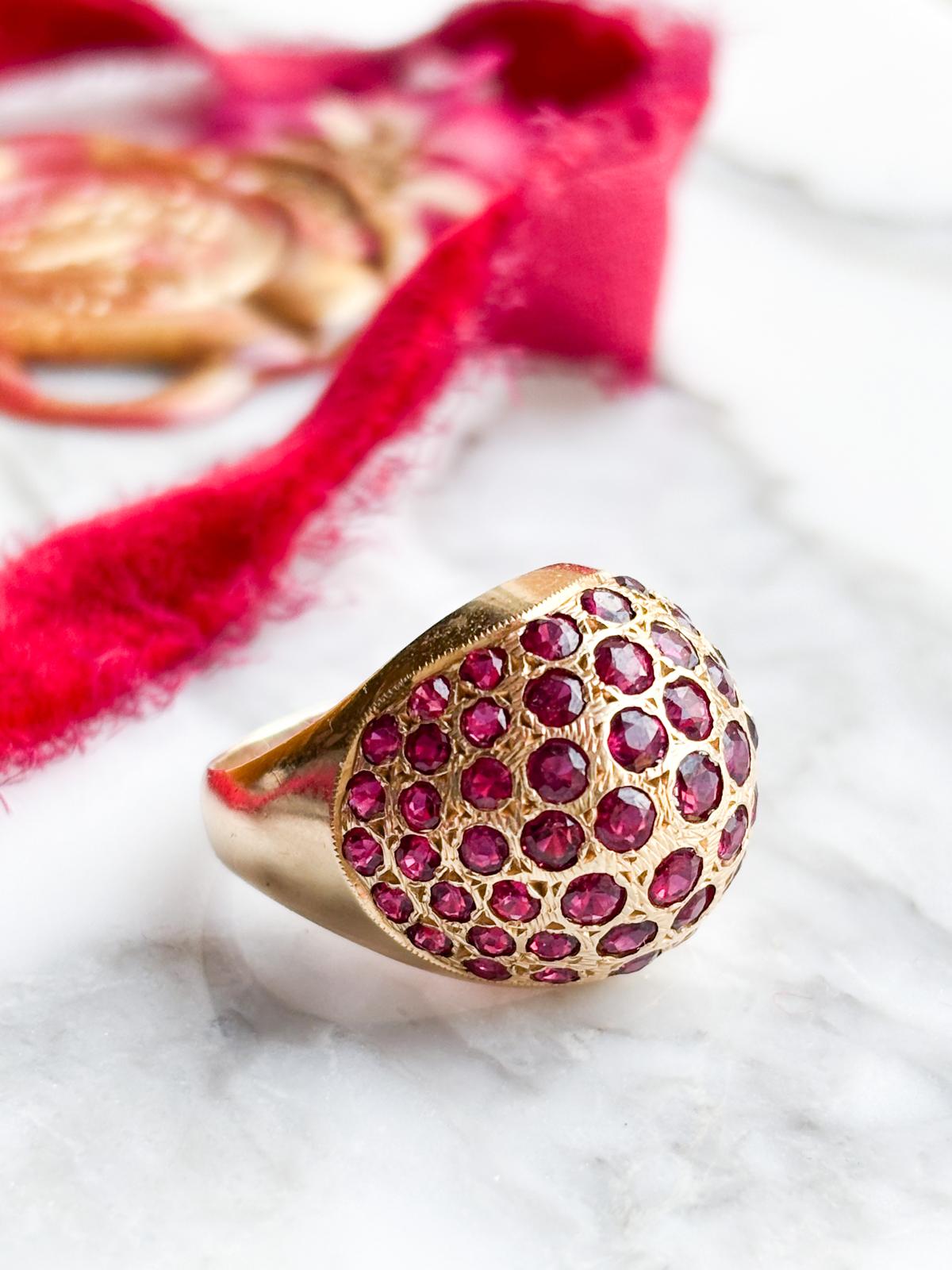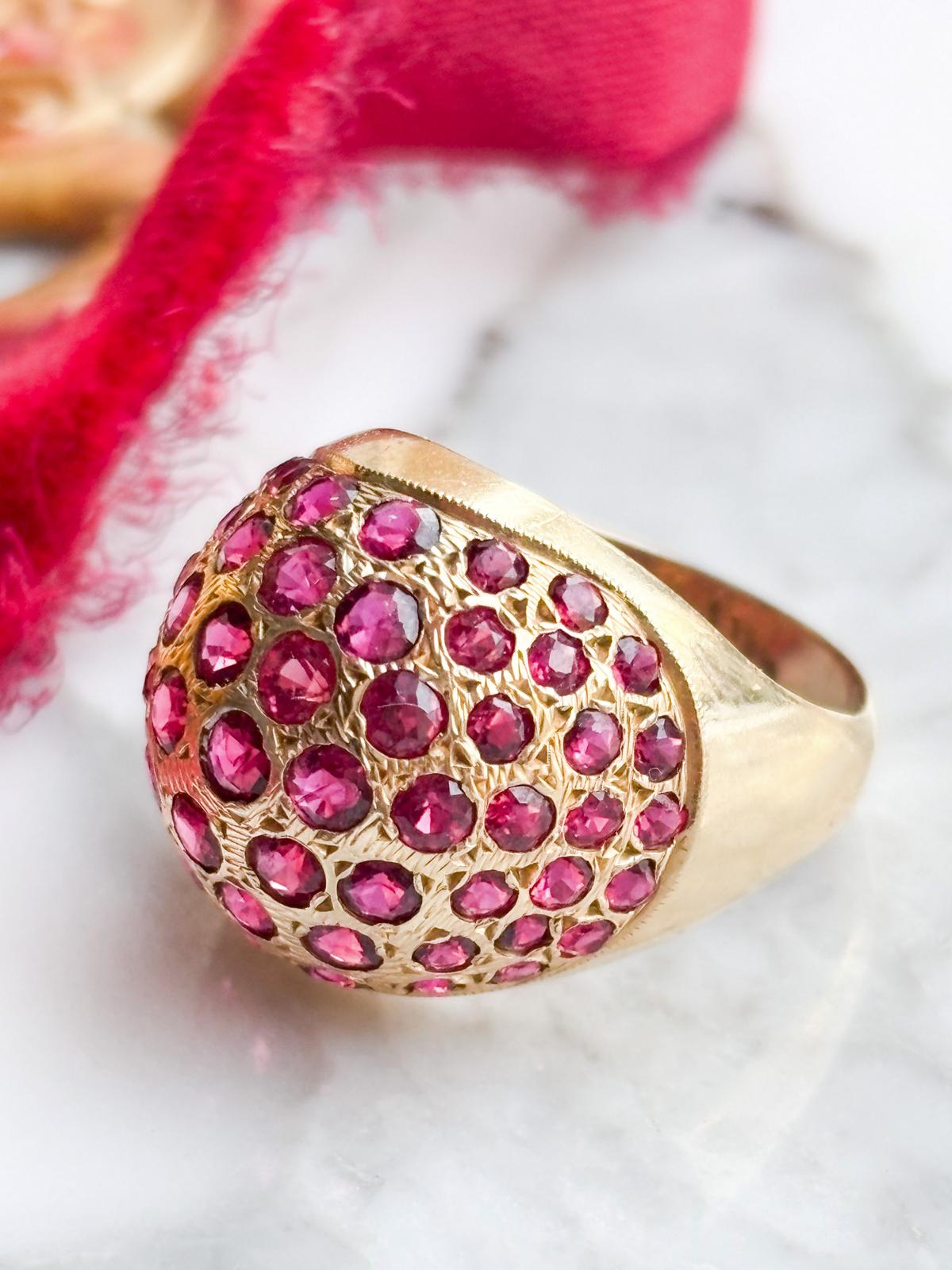 14k Vintage Ruby Bombe Ring Yellow Gold
