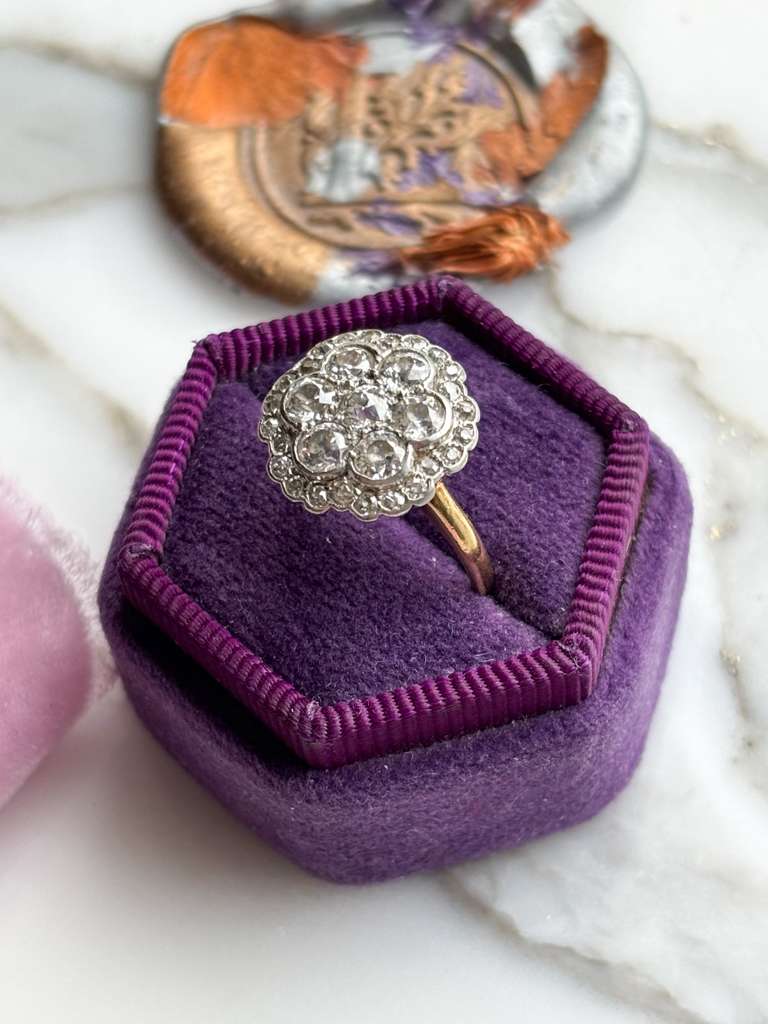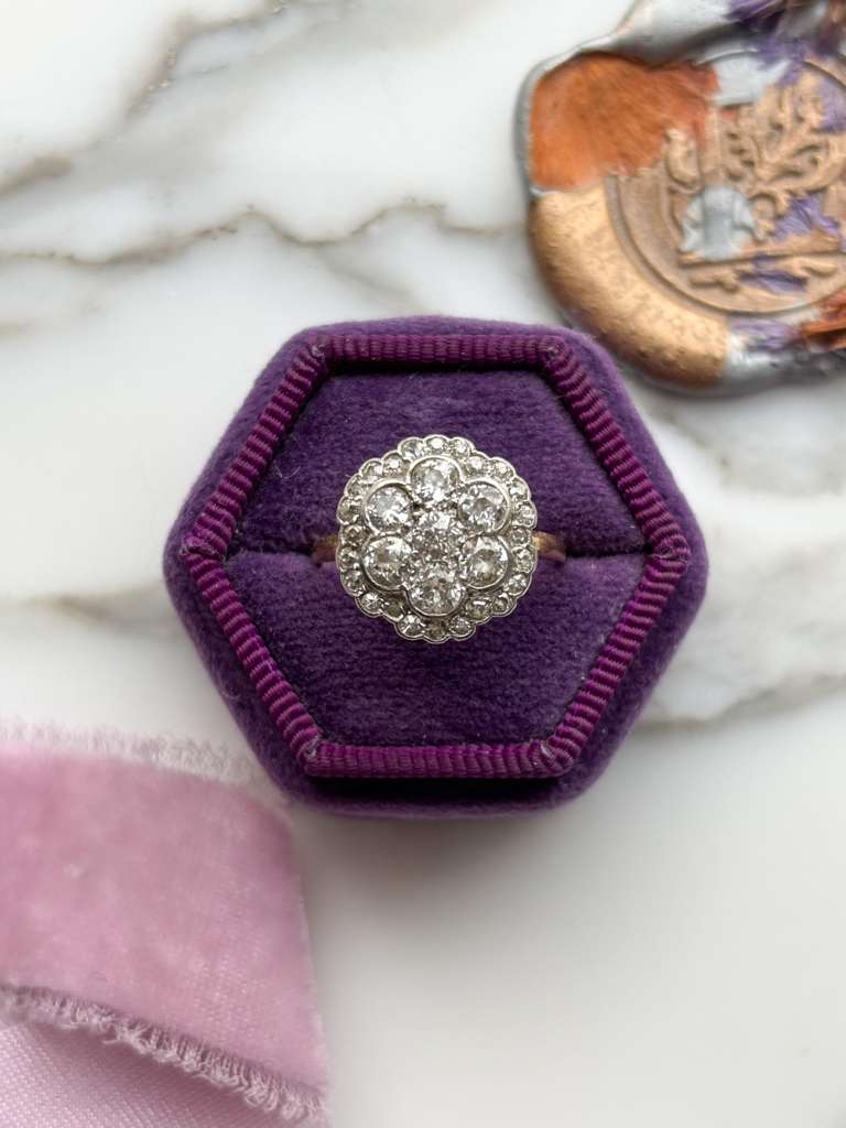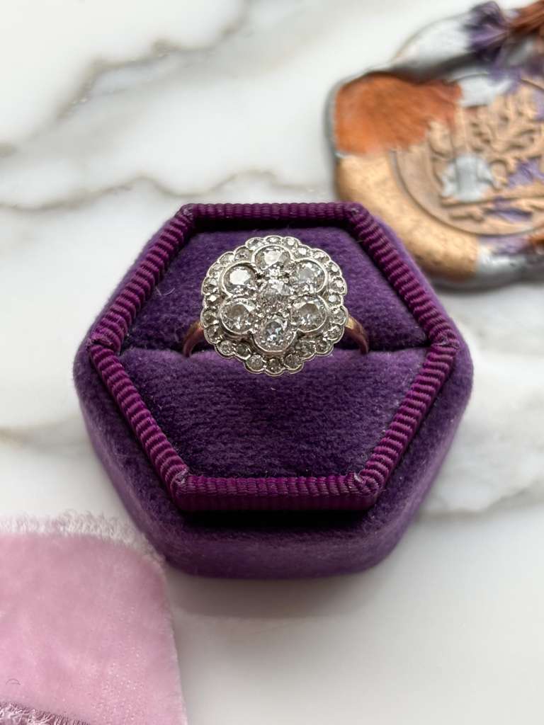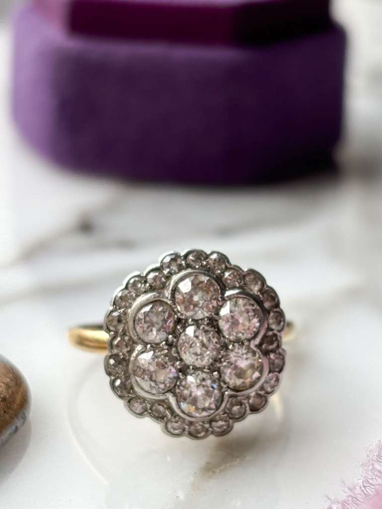 18k Edwardian ~1.88cttw Diamond Cluster Ring