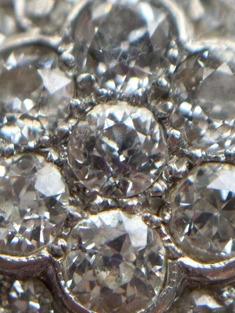 Description: An antique Edwardian 18k tested ~1.88cttw old mine cut diamond cluster daisy with scalloped edges.