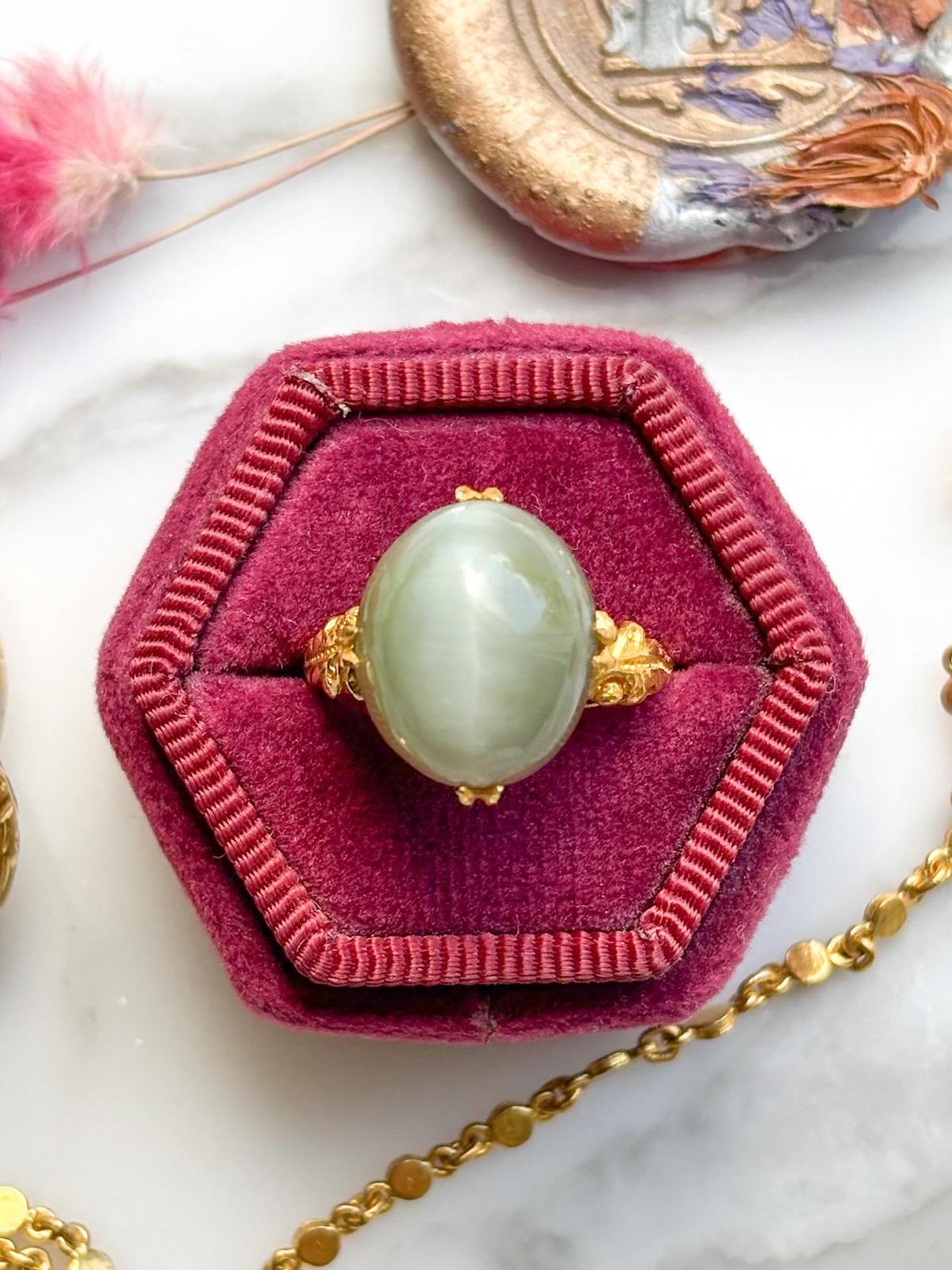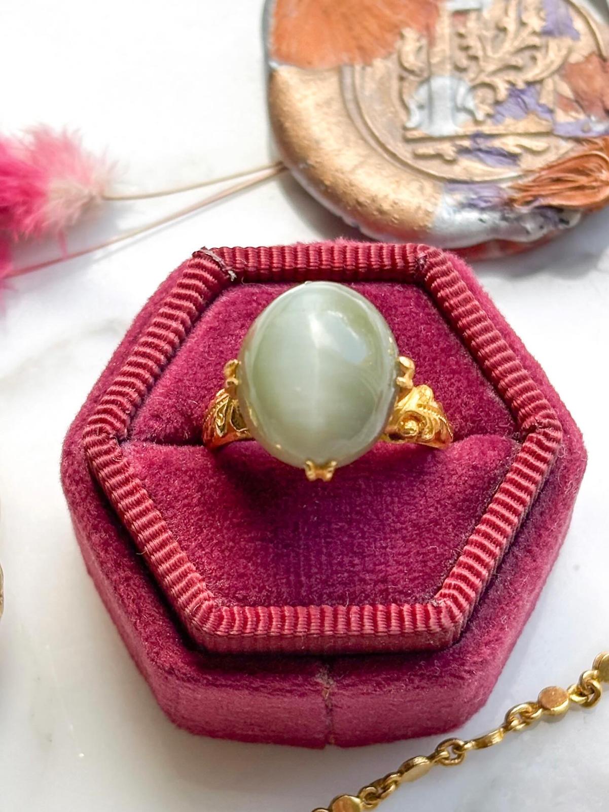 24k Vintage Cat's Eye Jade Cabochon Ring