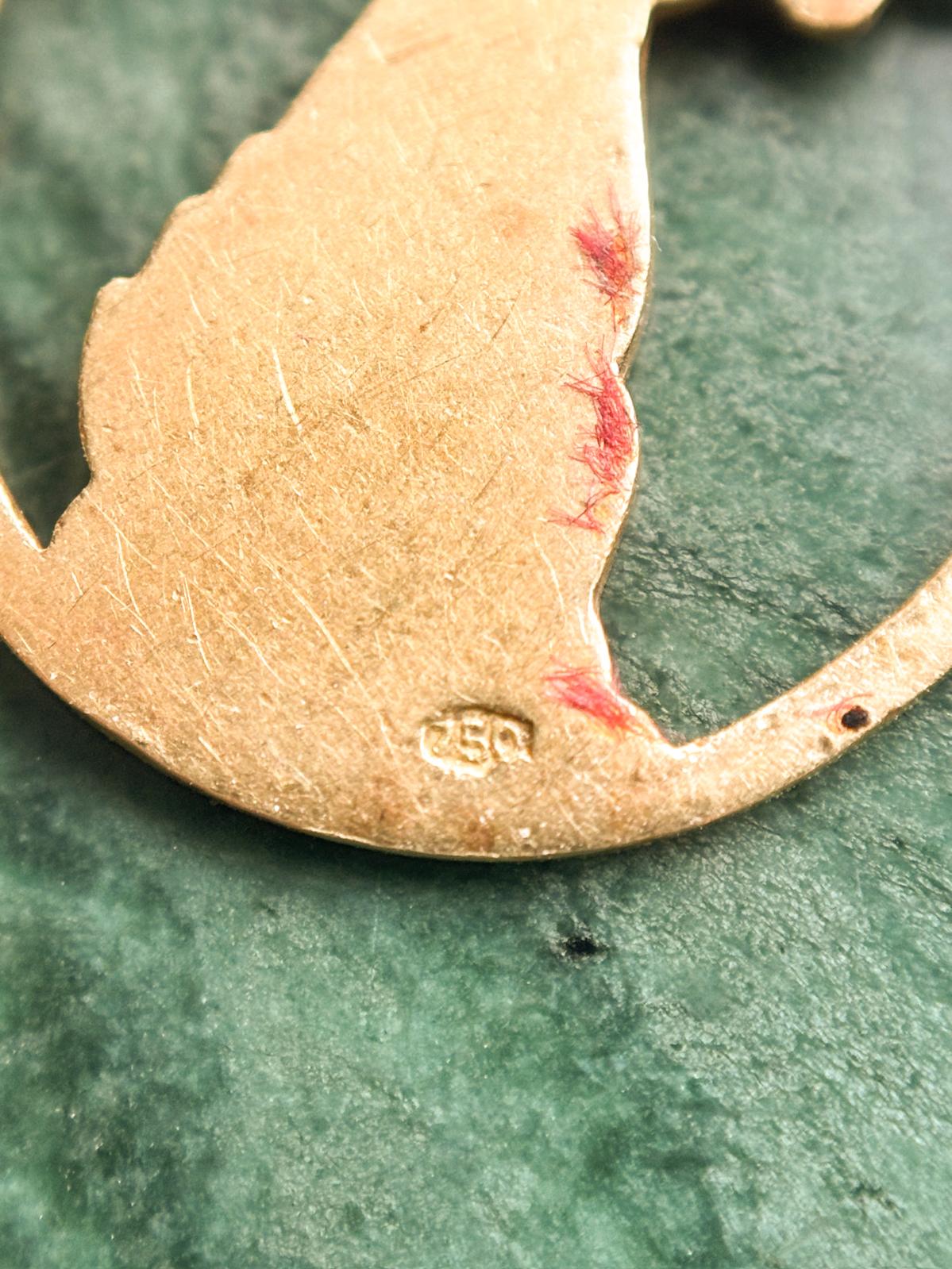 Description:  A vintage 18k stamped 750, bronze-color enamel horoscope Leo pendant