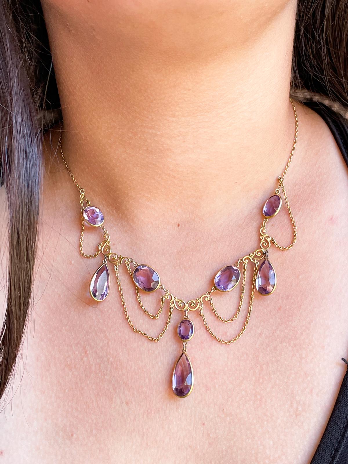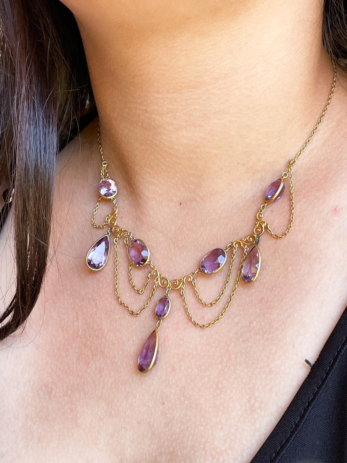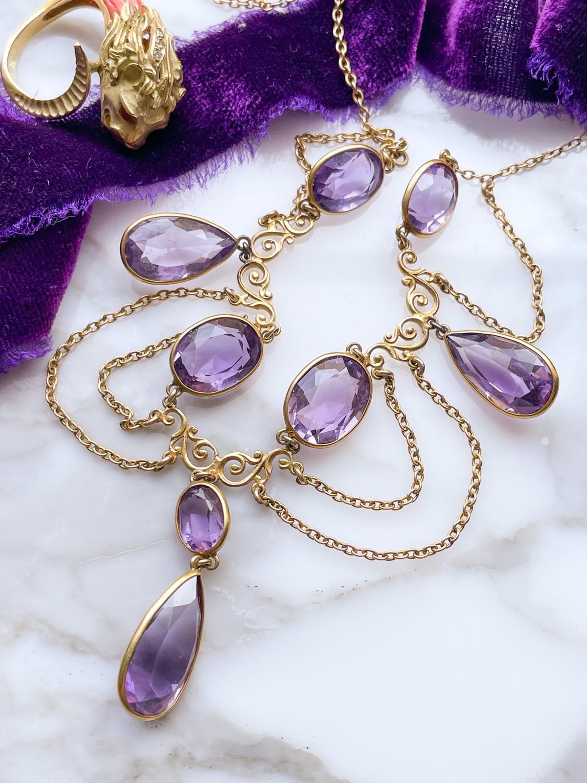 10k Art Nouveau 30cttw Amethyst Festoon Necklace