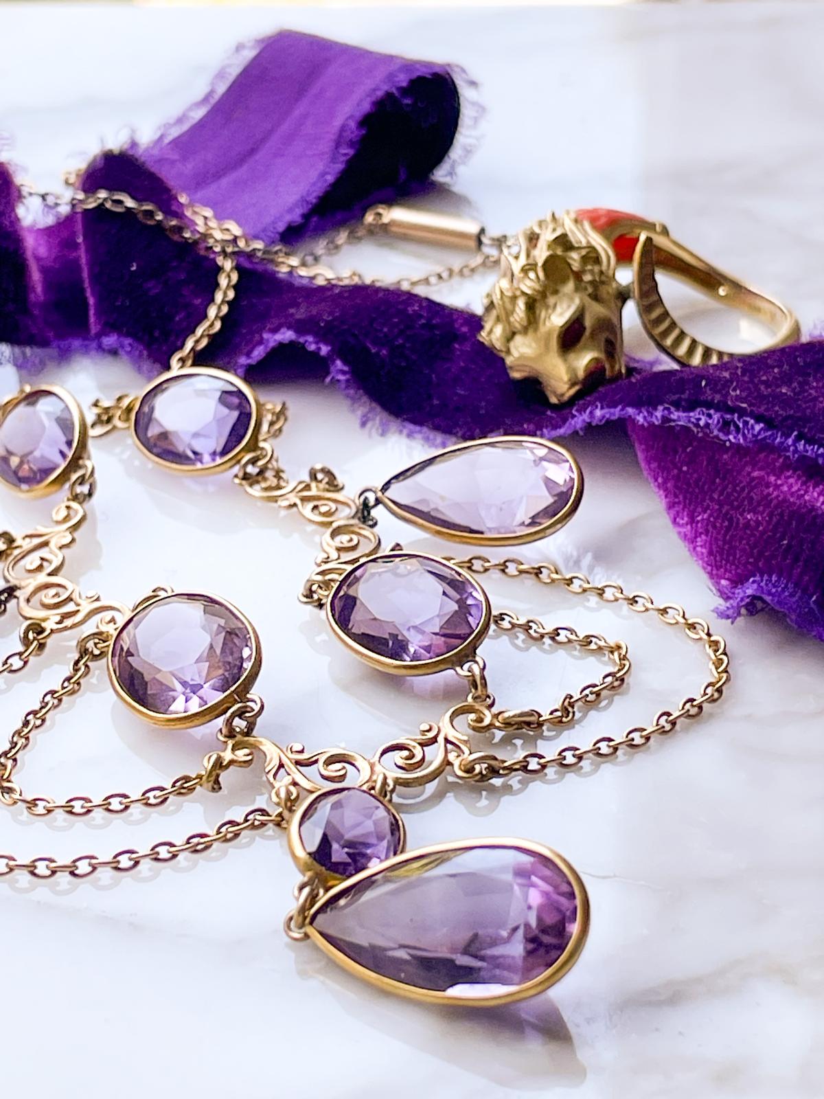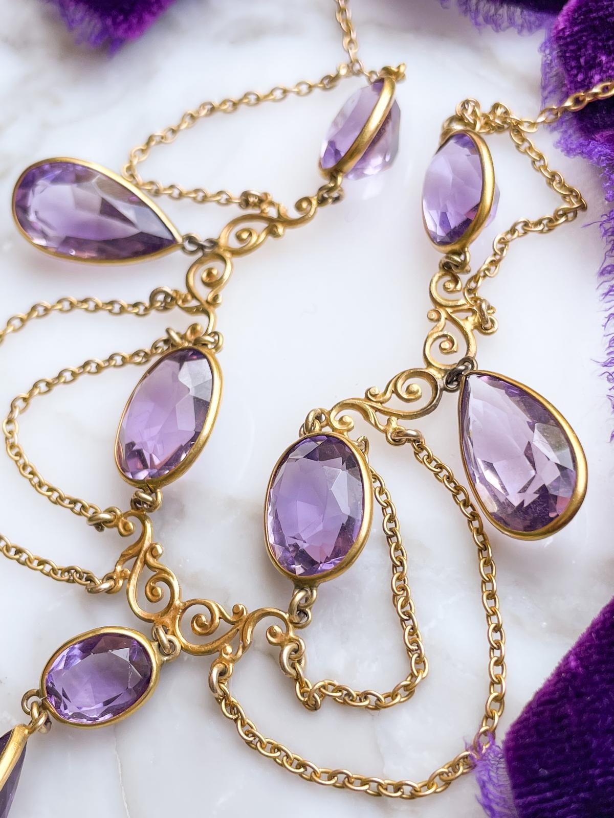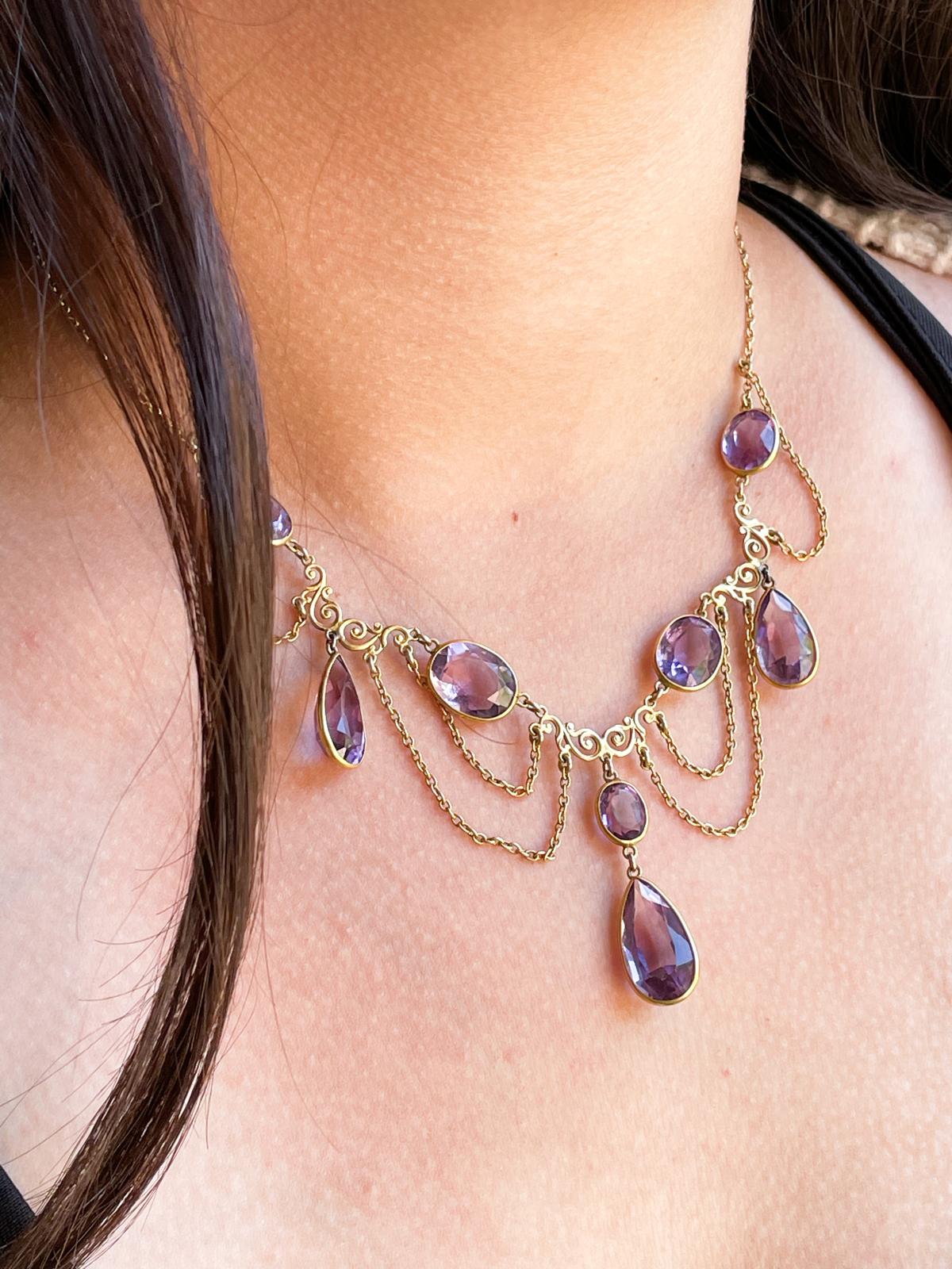 10k Art Nouveau 30cttw Amethyst Festoon Necklace