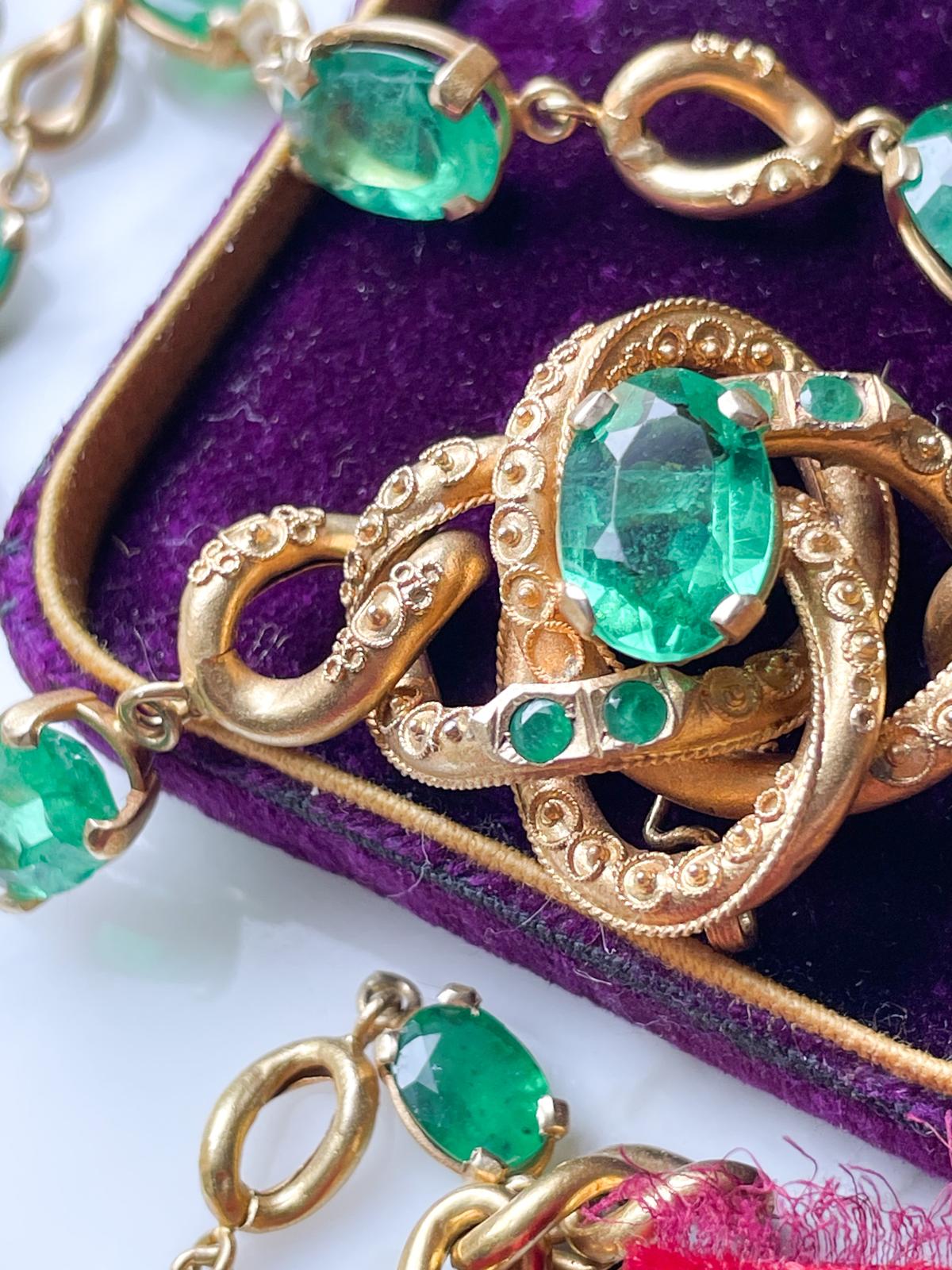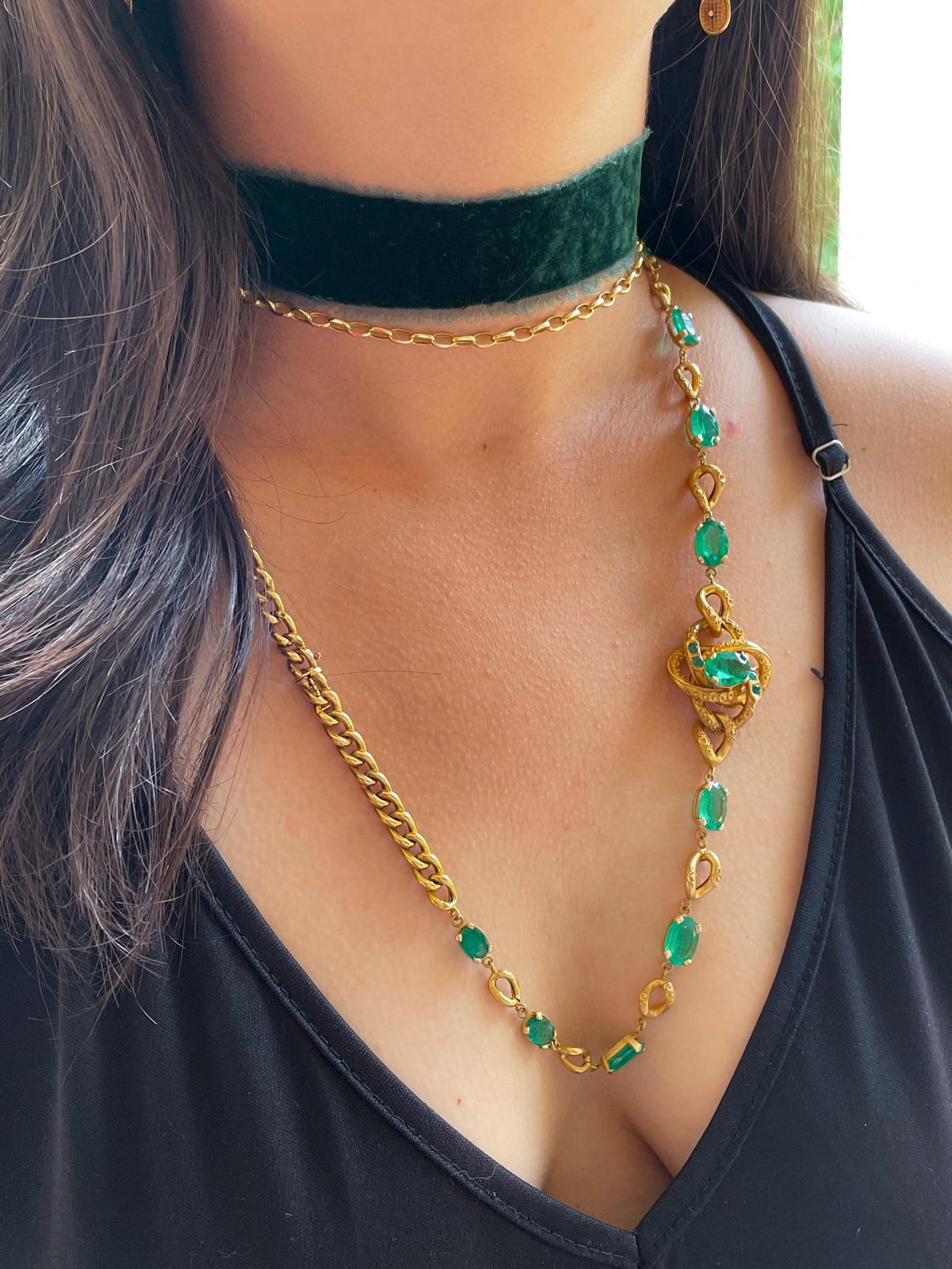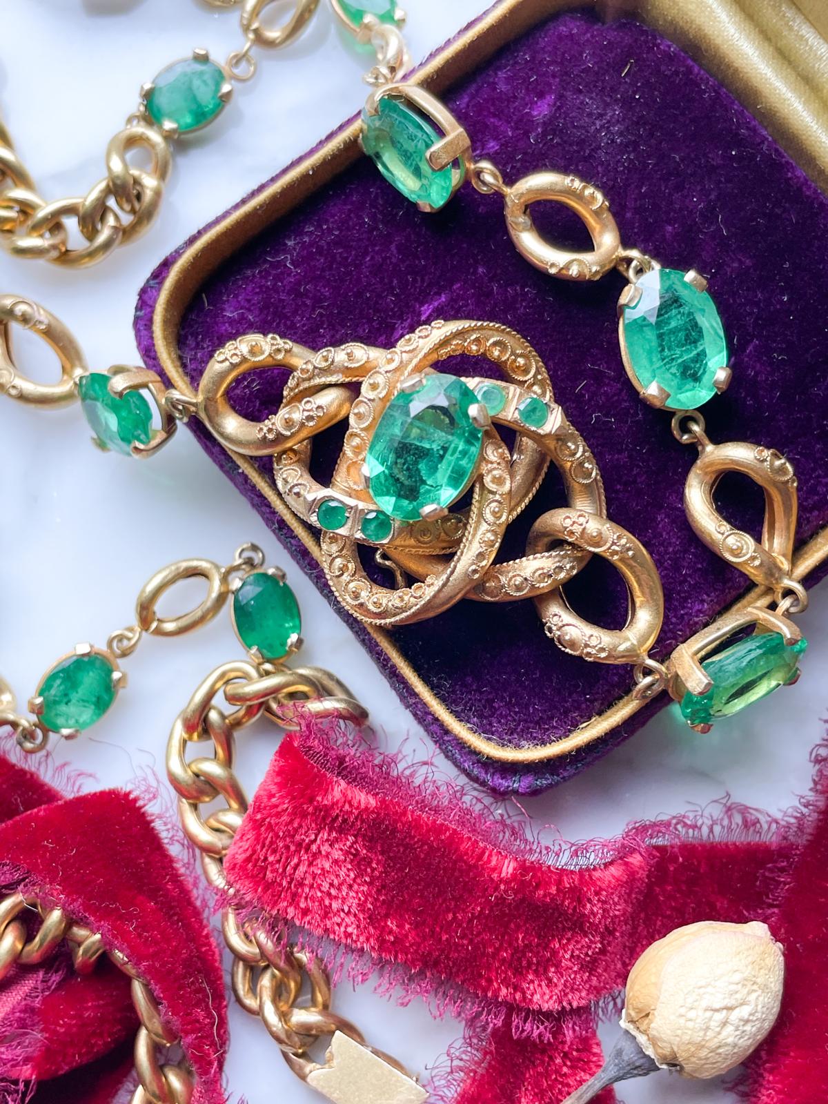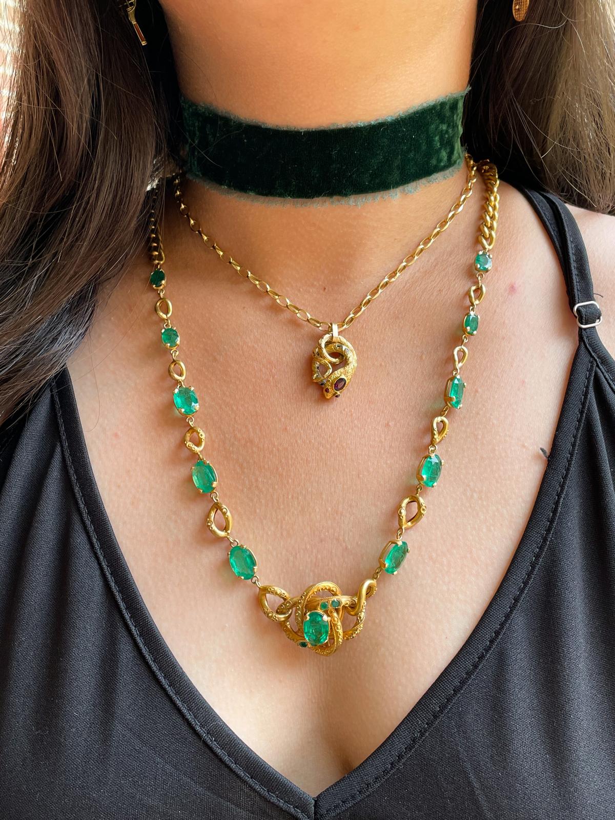 12k Victorian 24cttw Natural Emerald Necklace