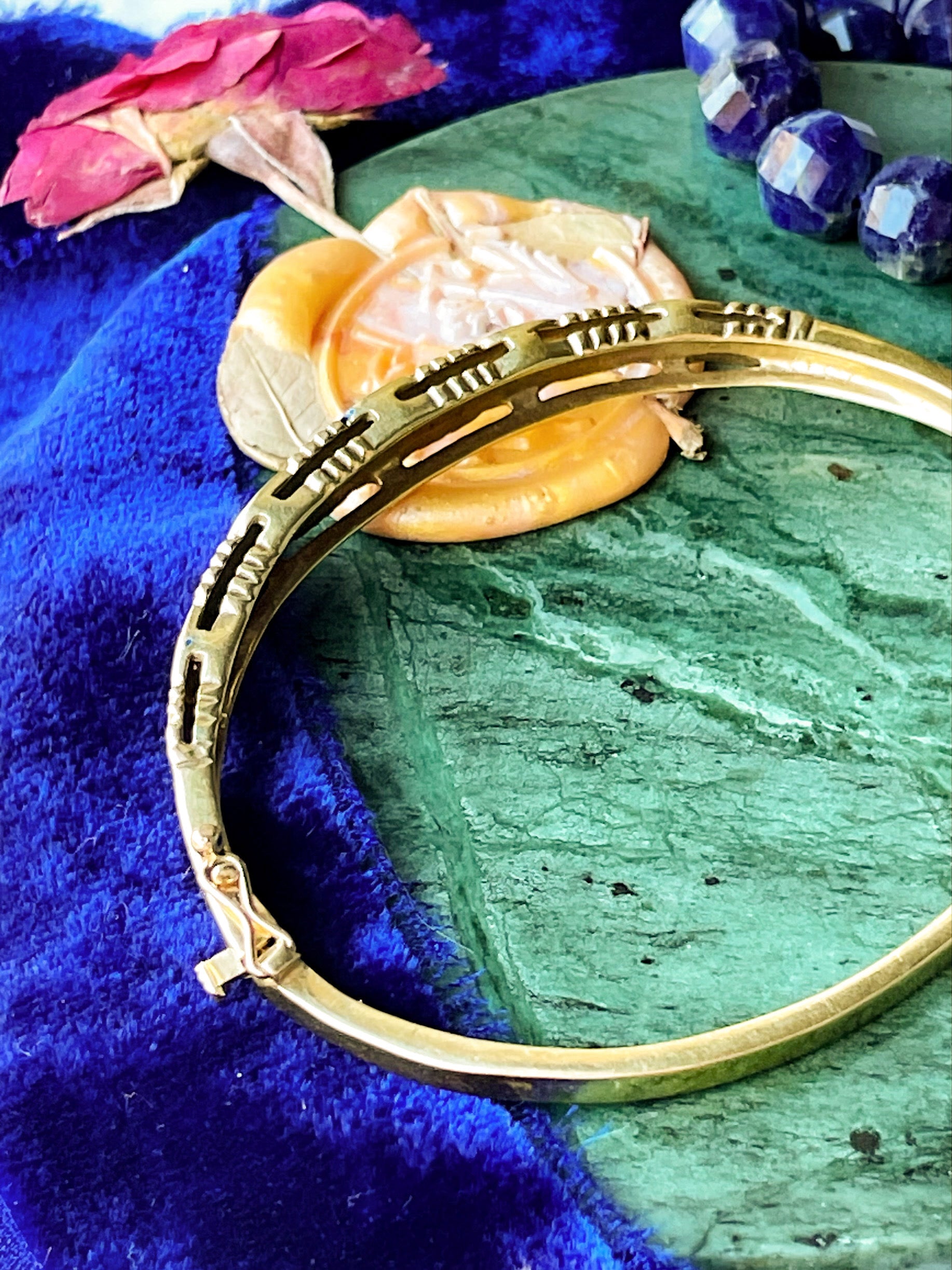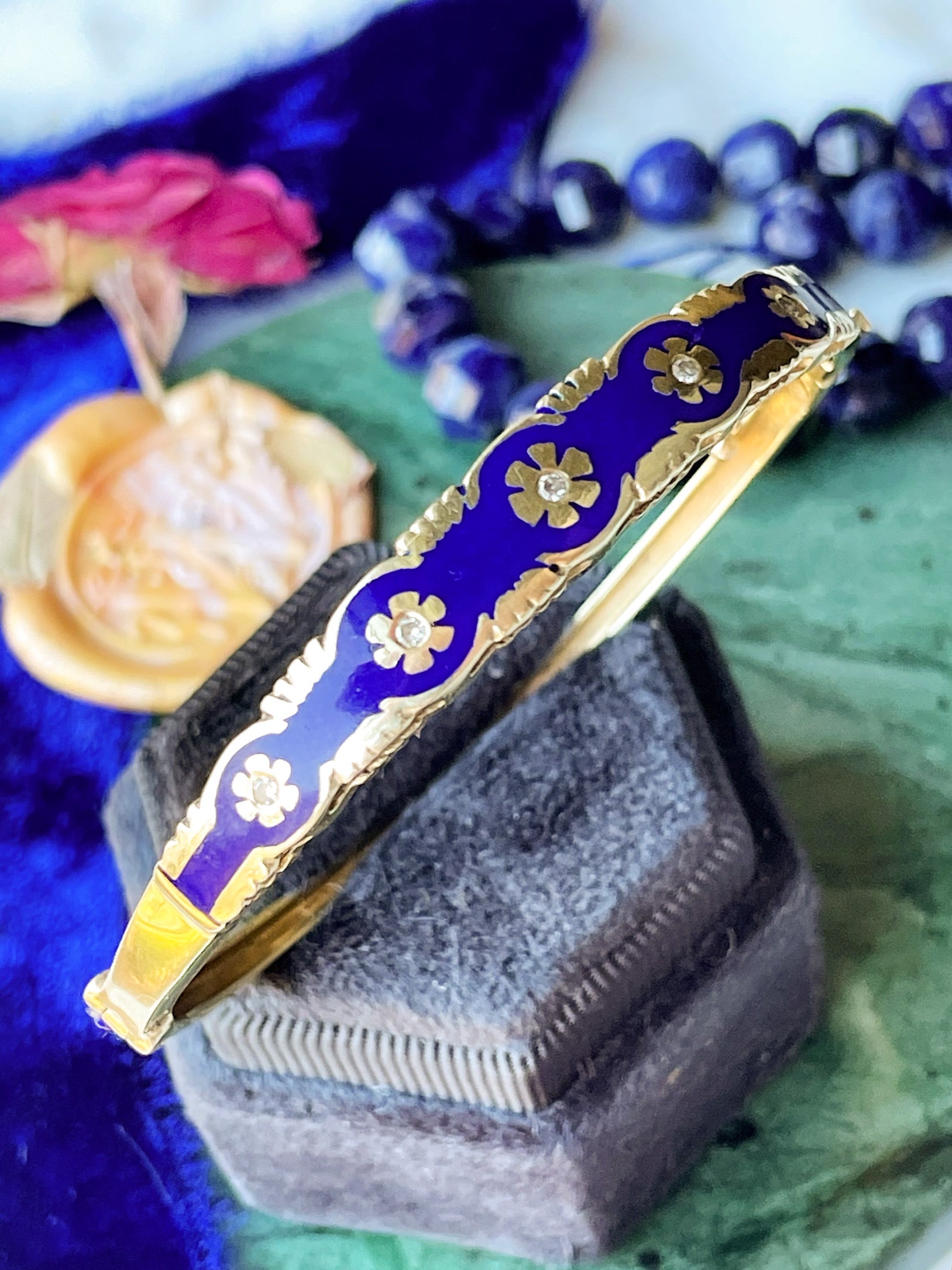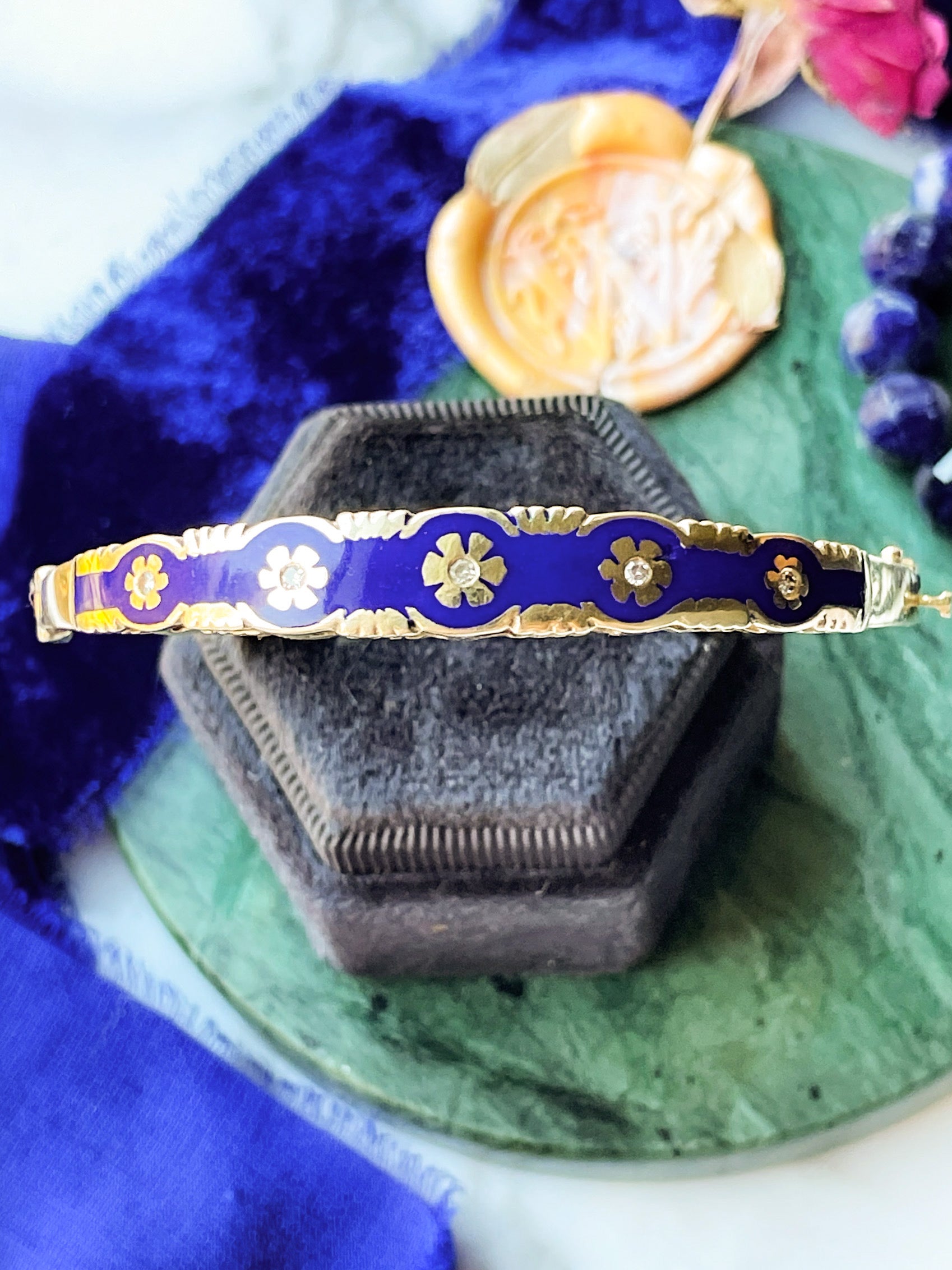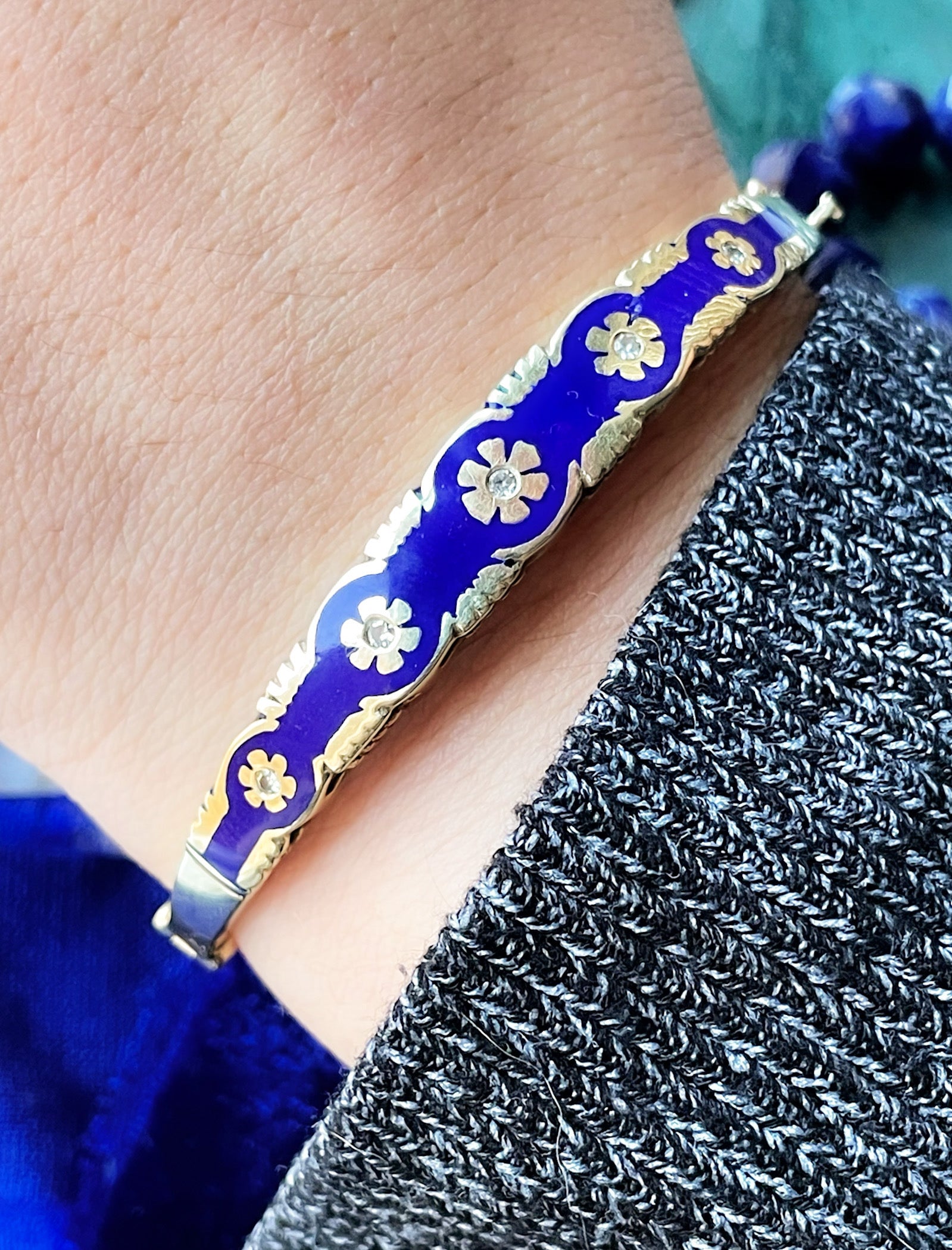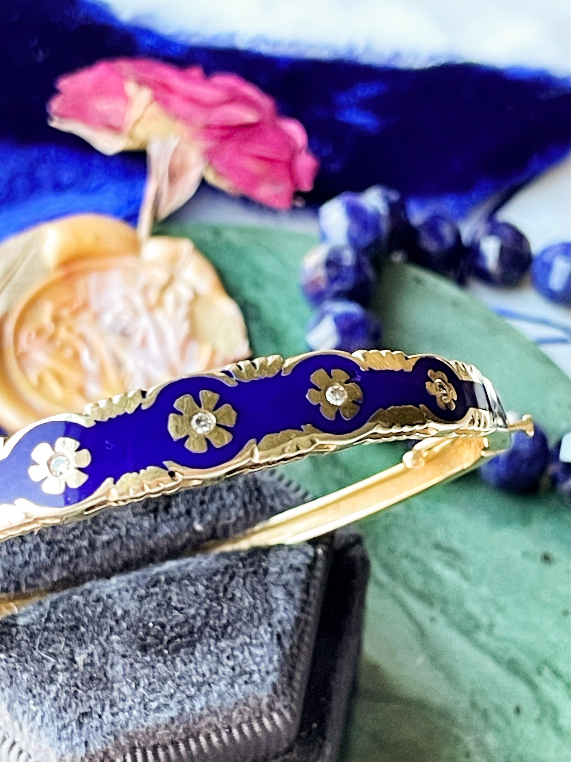 14k Antique Blue Enamel Diamond Bangle