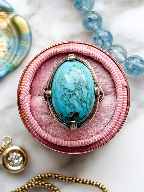 18k Antique Victorian Persian Turquoise and Diamond Ring