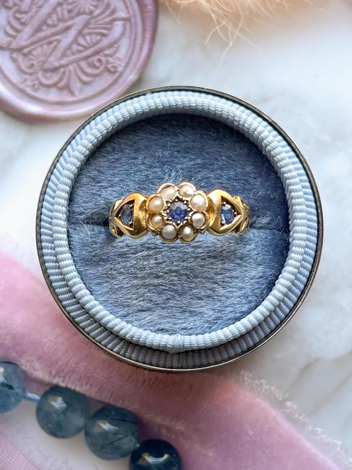 15k Victorian Sapphire w/ Seed Pearl Ring