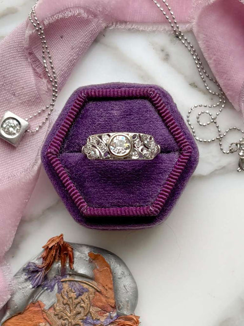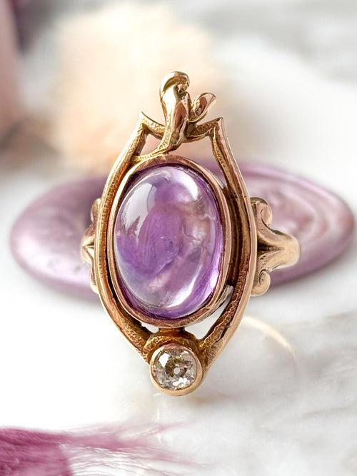 10k Art Nouveau Amethyst and 0.25ct Diamond Ring
