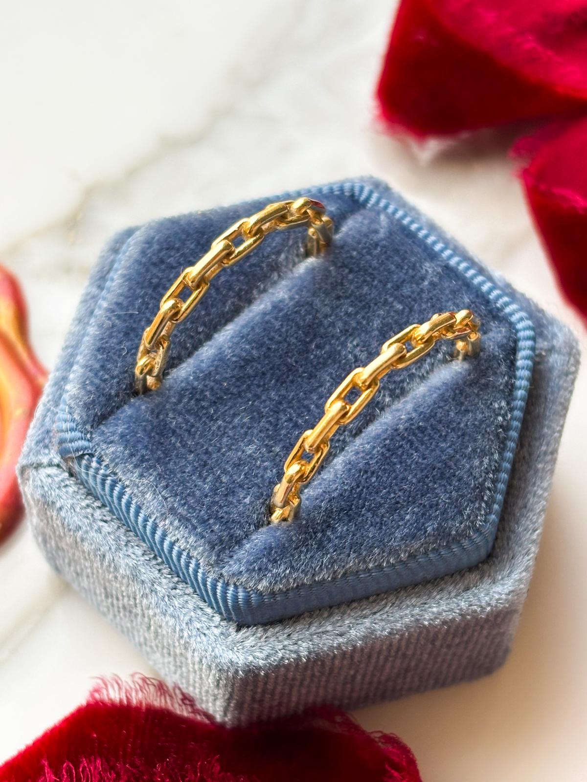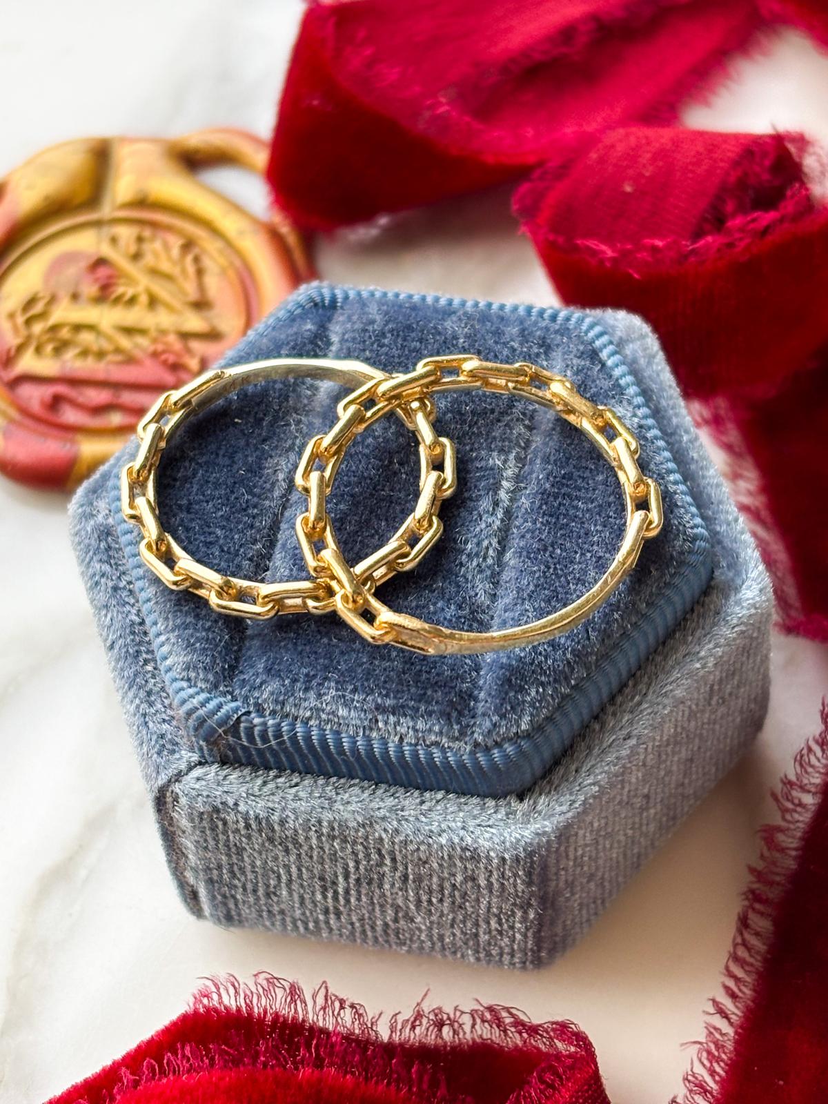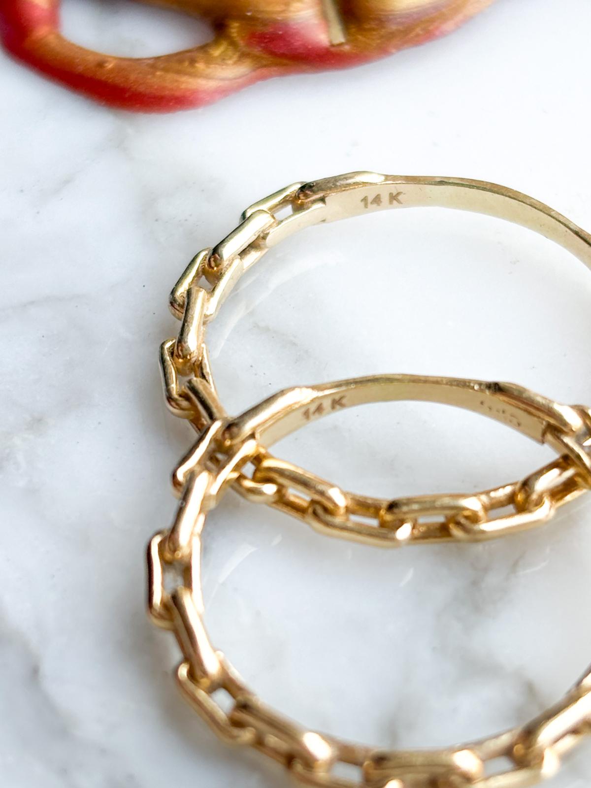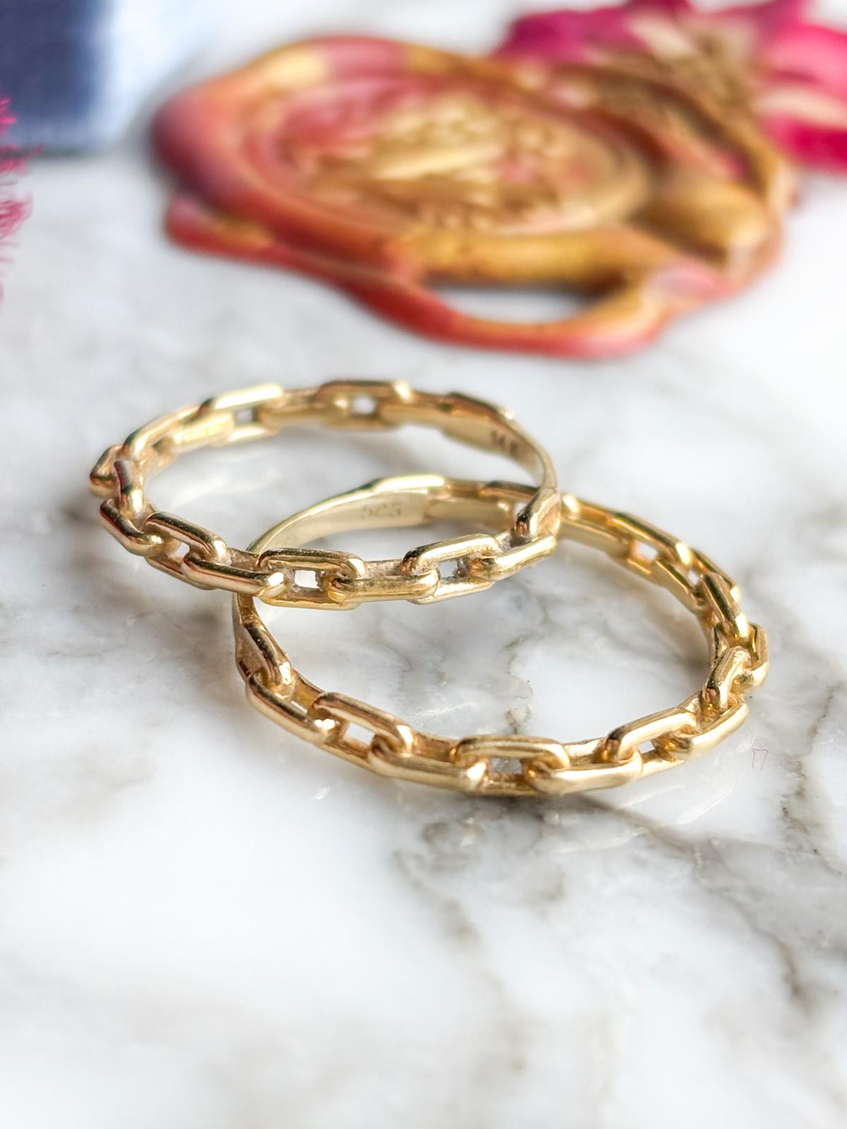 Description: These are 14k stamped paperclip link bands in yellow gold. There are two sizes available.