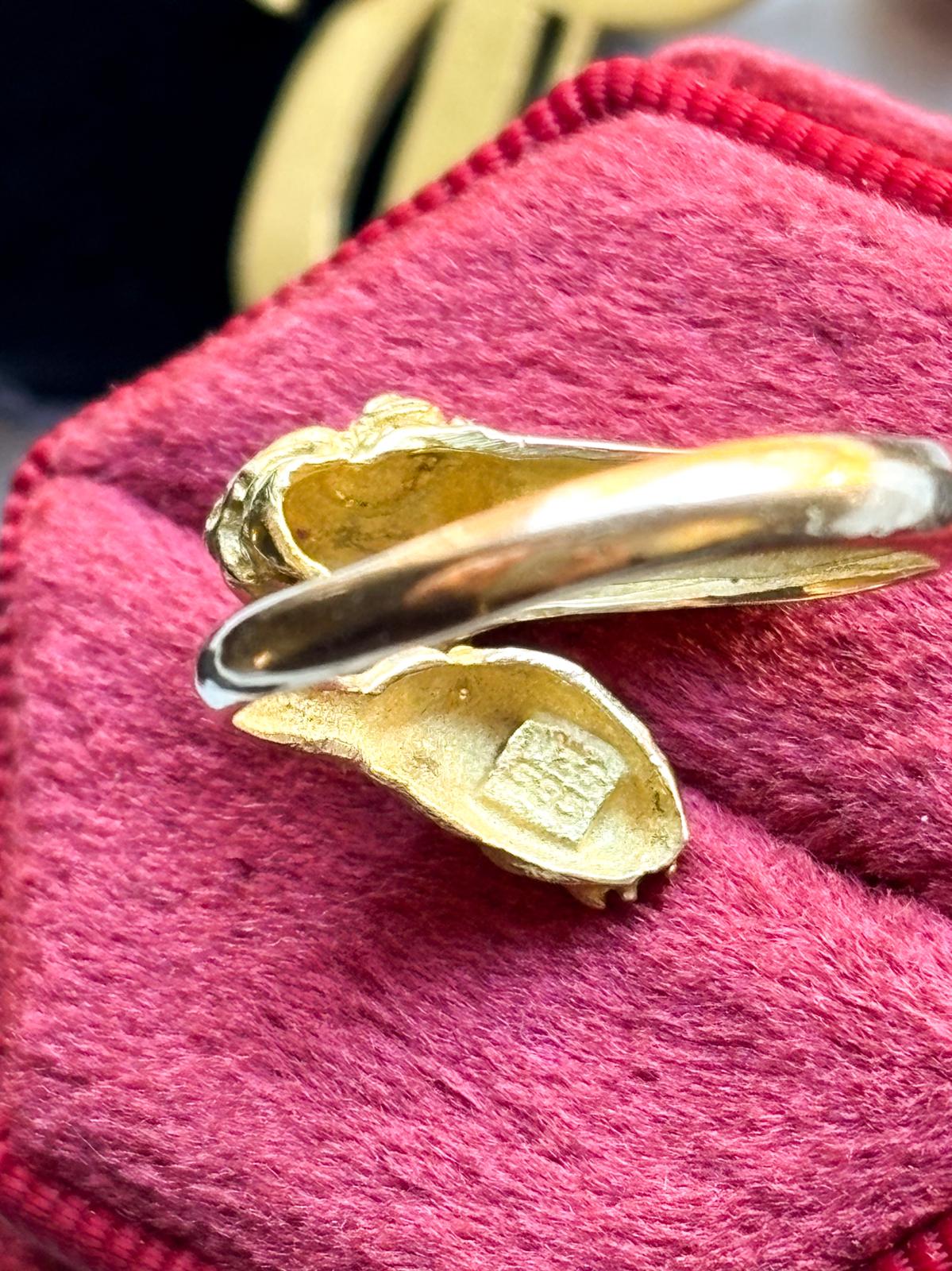 Description: A vintage 14k stamped 585 lion bypass in yellow gold.