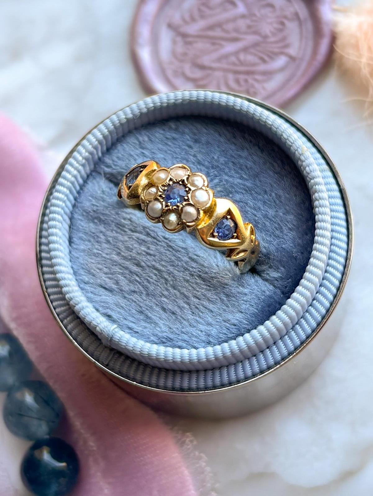 15k Victorian Sapphire w/ Seed Pearl Ring