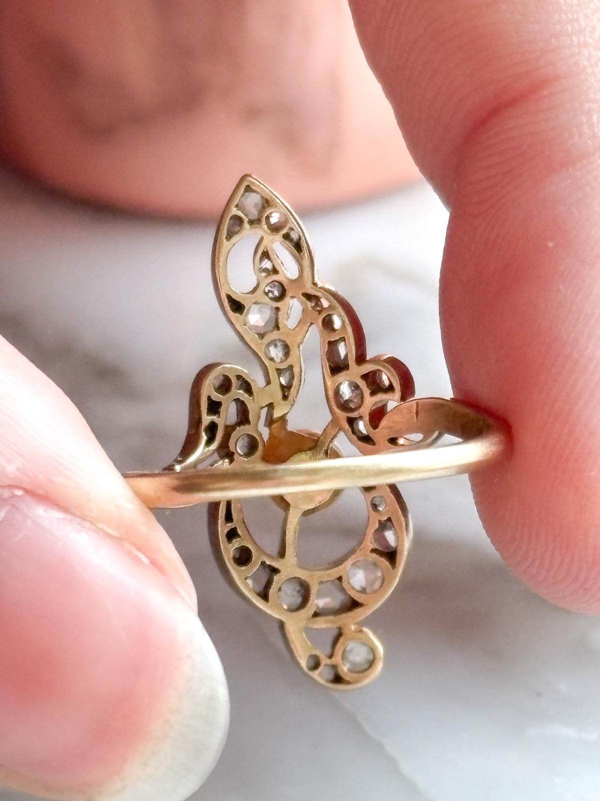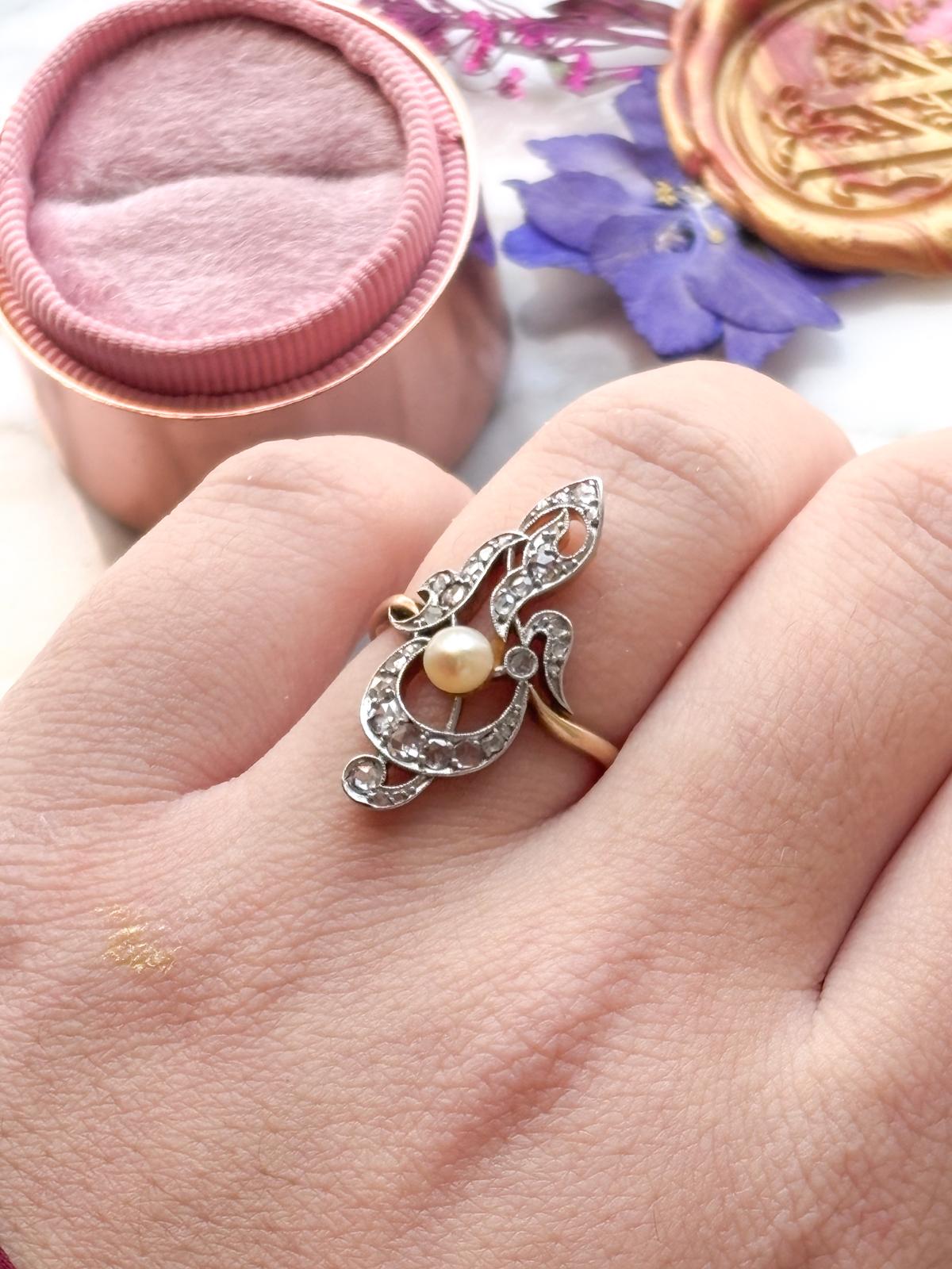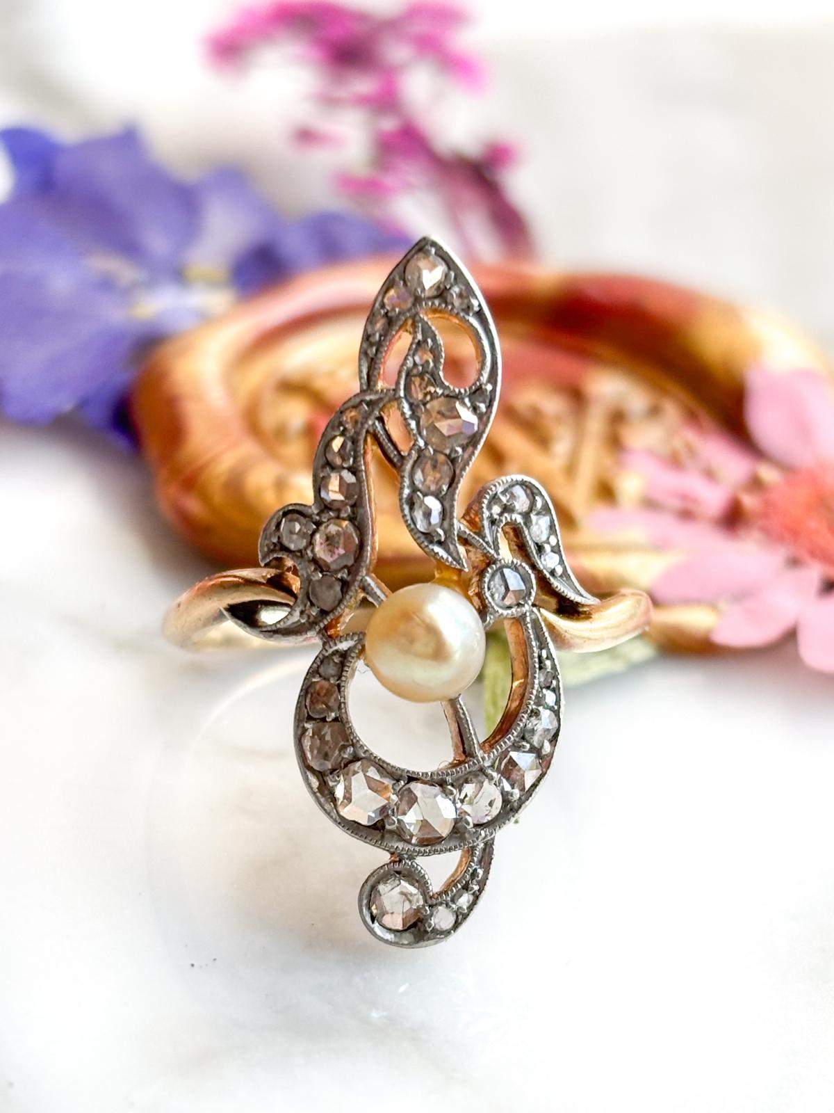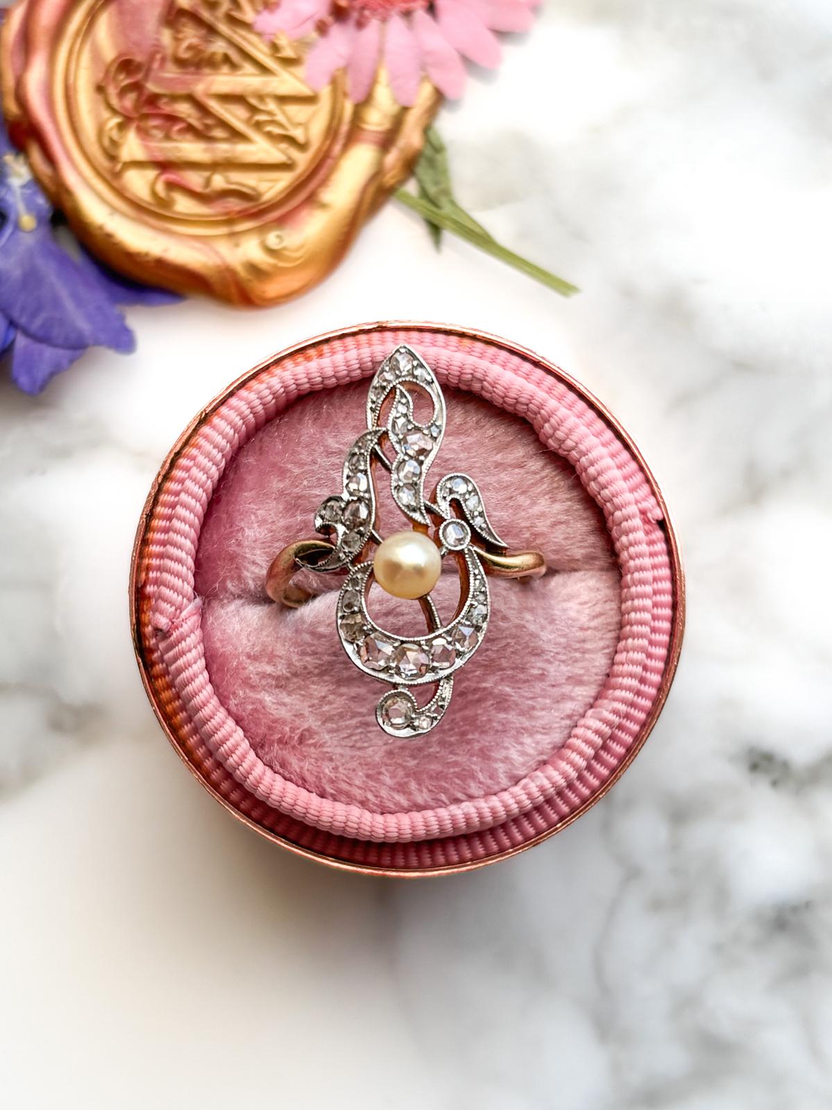 18k & Platinum Antique Belle Epoque Diamond & Pearl Ring