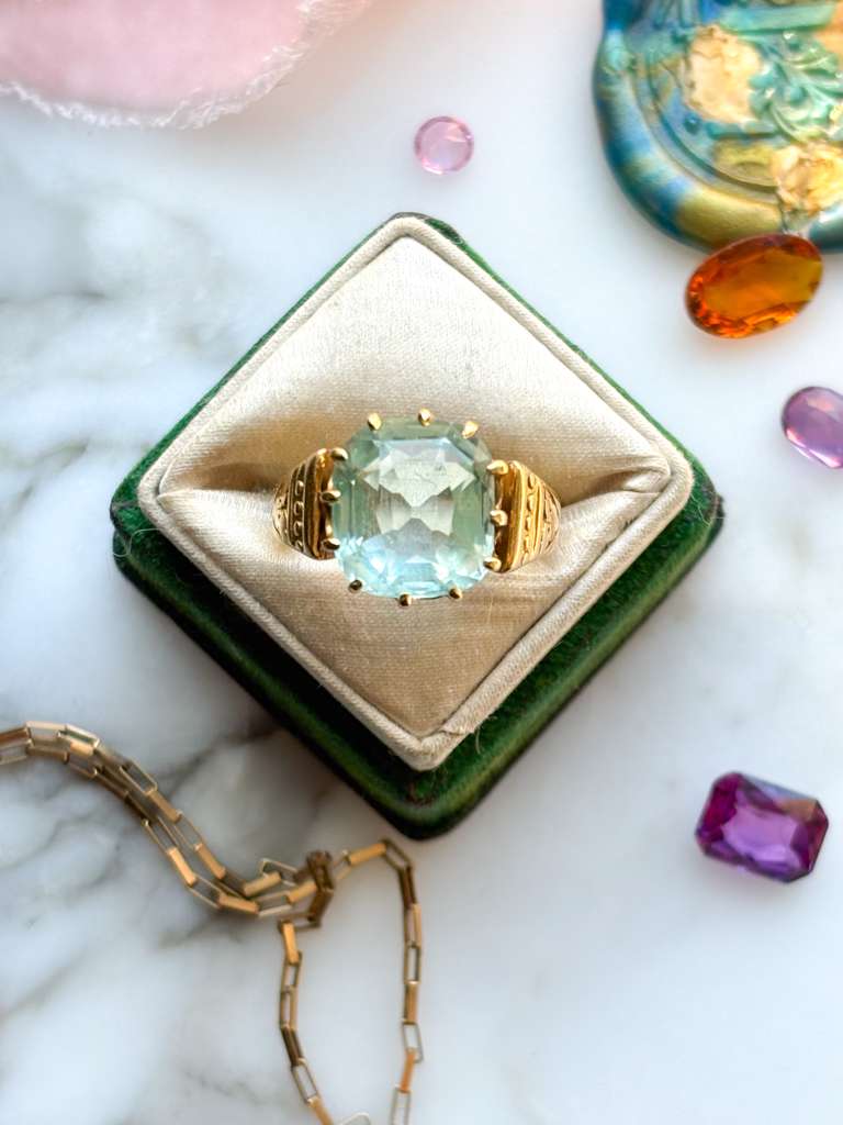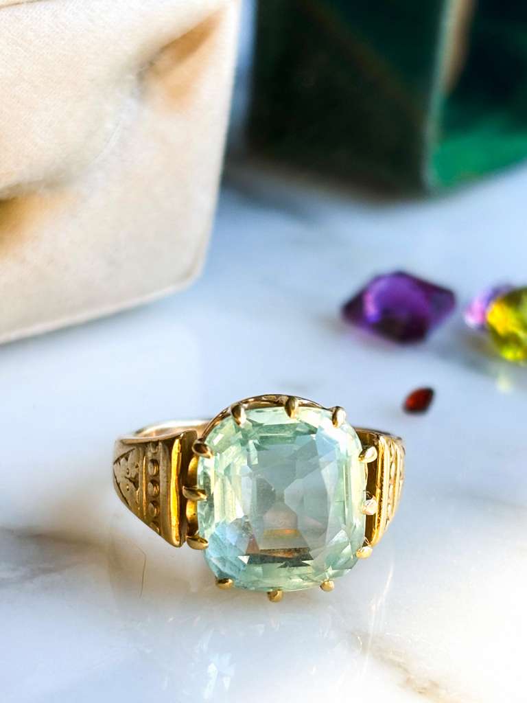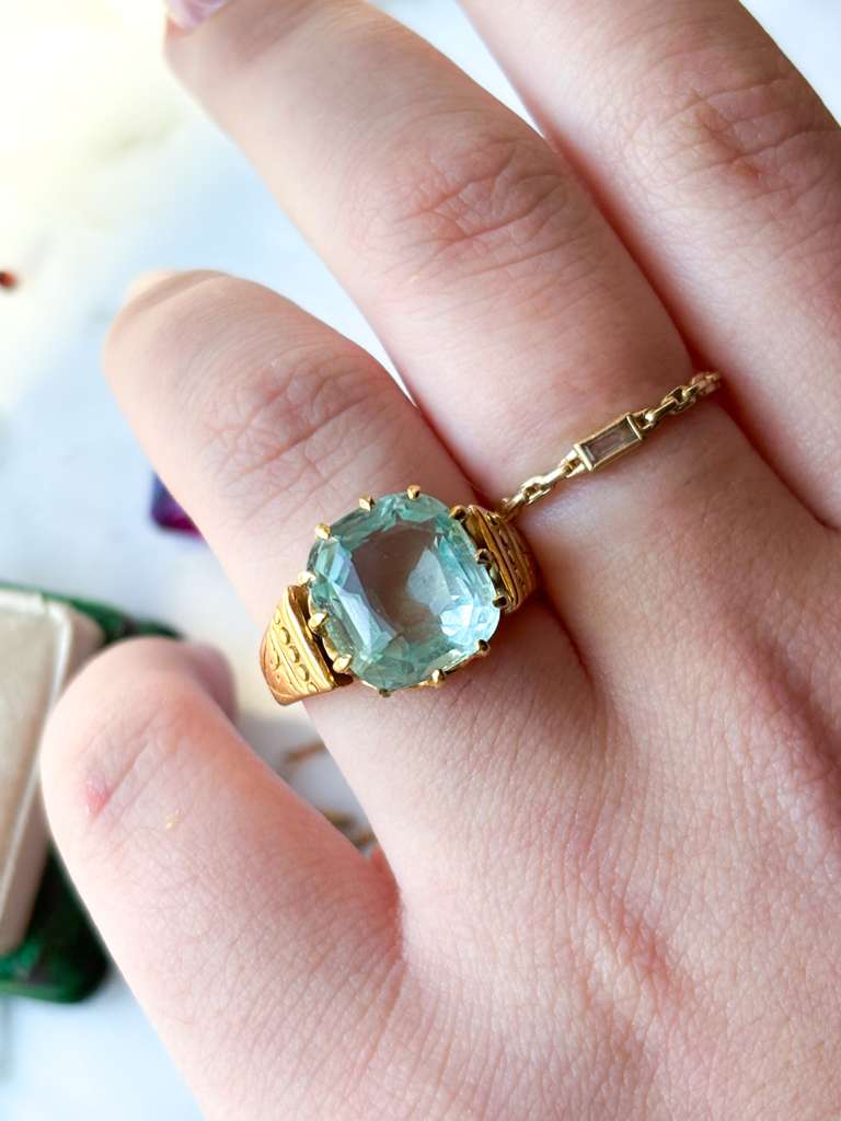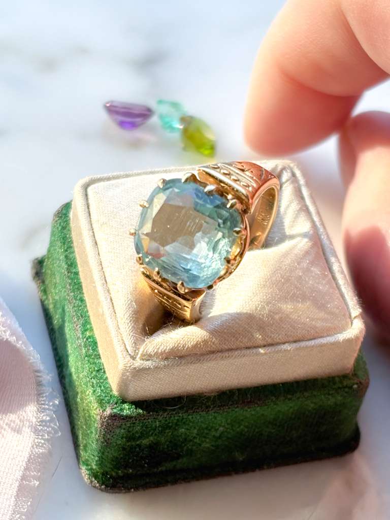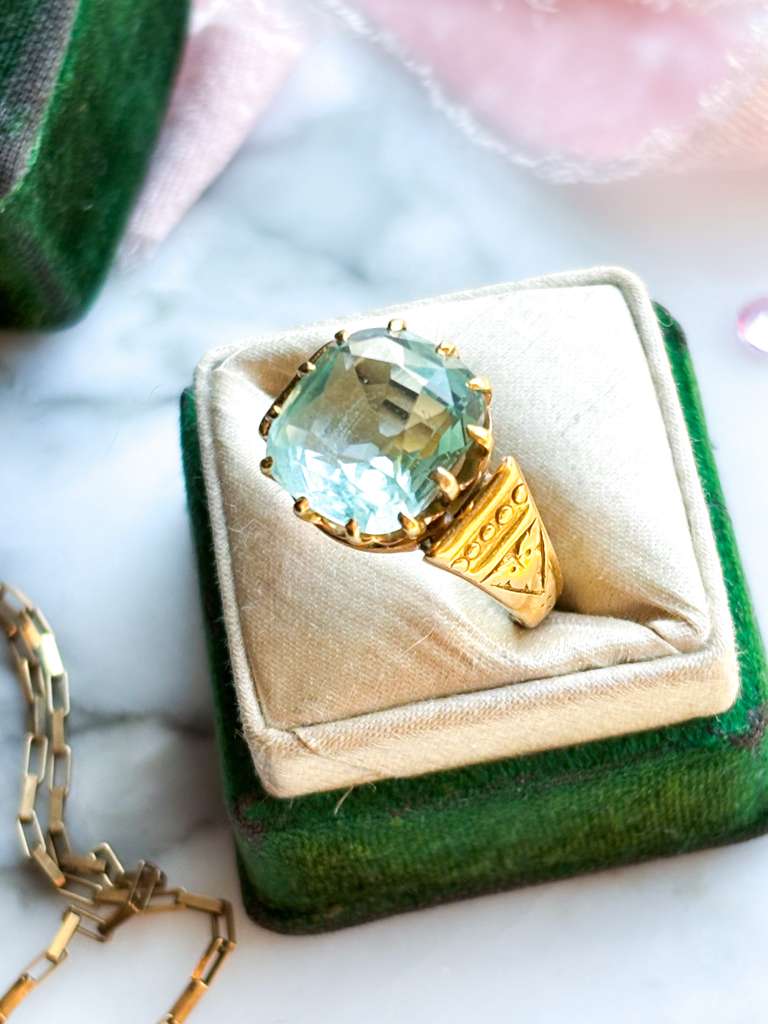 18k Victorian ~6.00ct Cushion Cut Aquamarine Ring