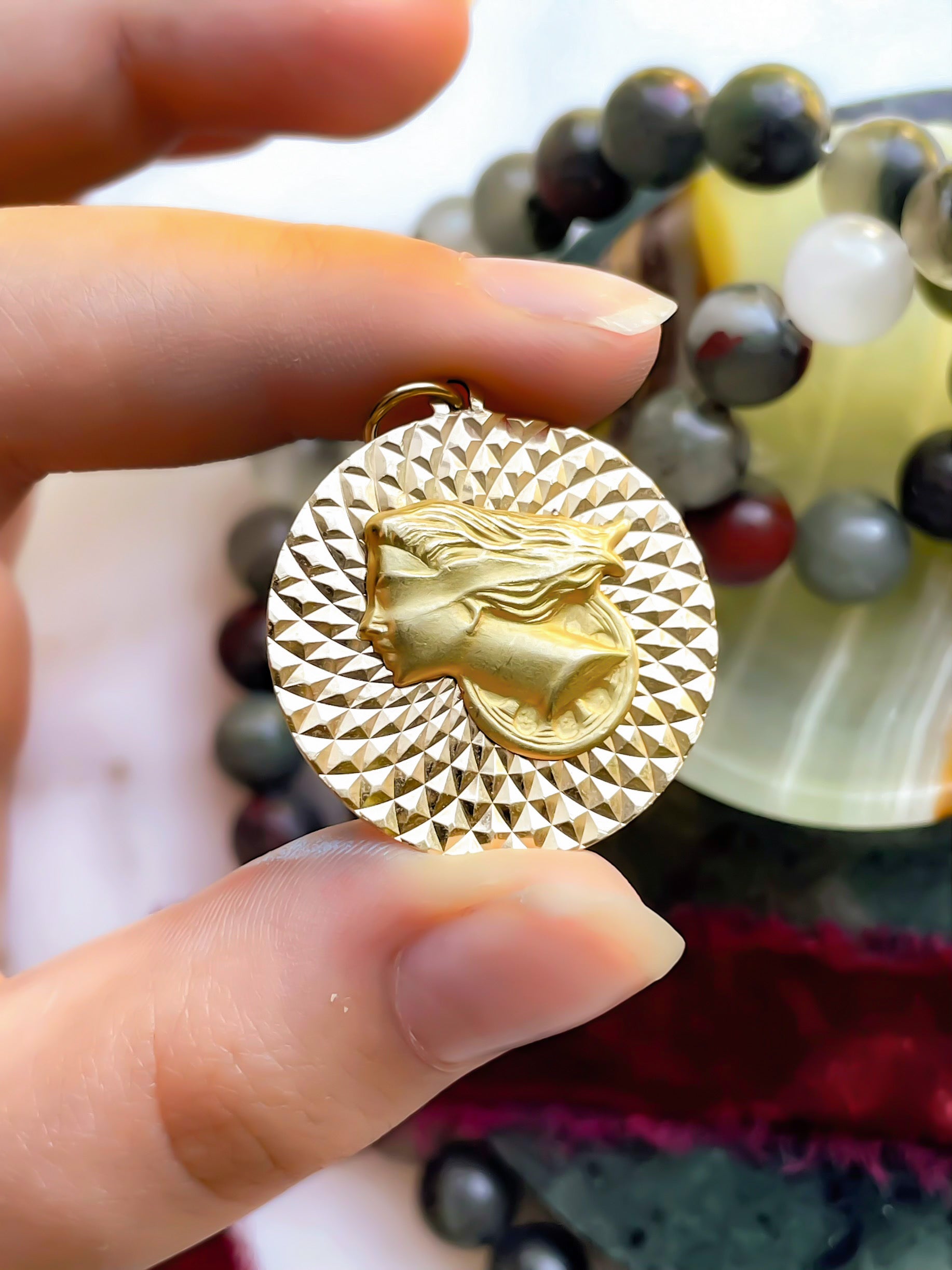 18k Vintage Lady Justice Medallion